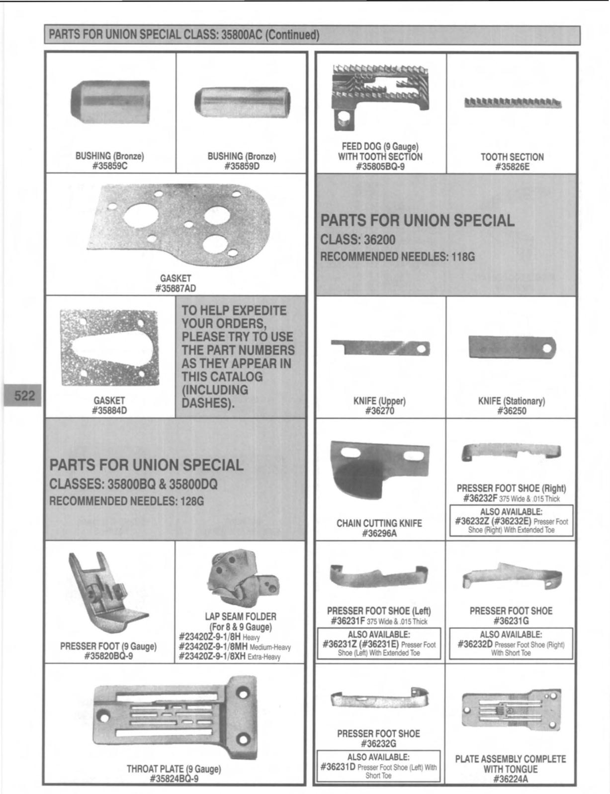 PARTS FOR UNION SPECIAL CLASS: 35800AC (Continued)