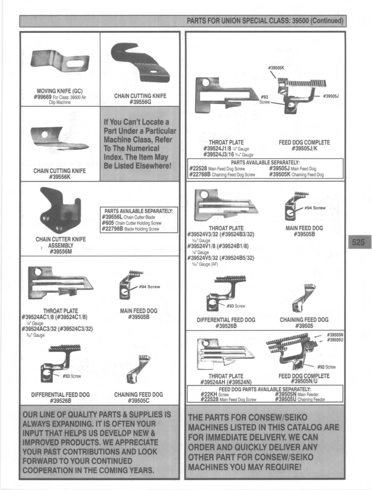 FEED DOG PARTS AVAILABLE SEPARATELY: