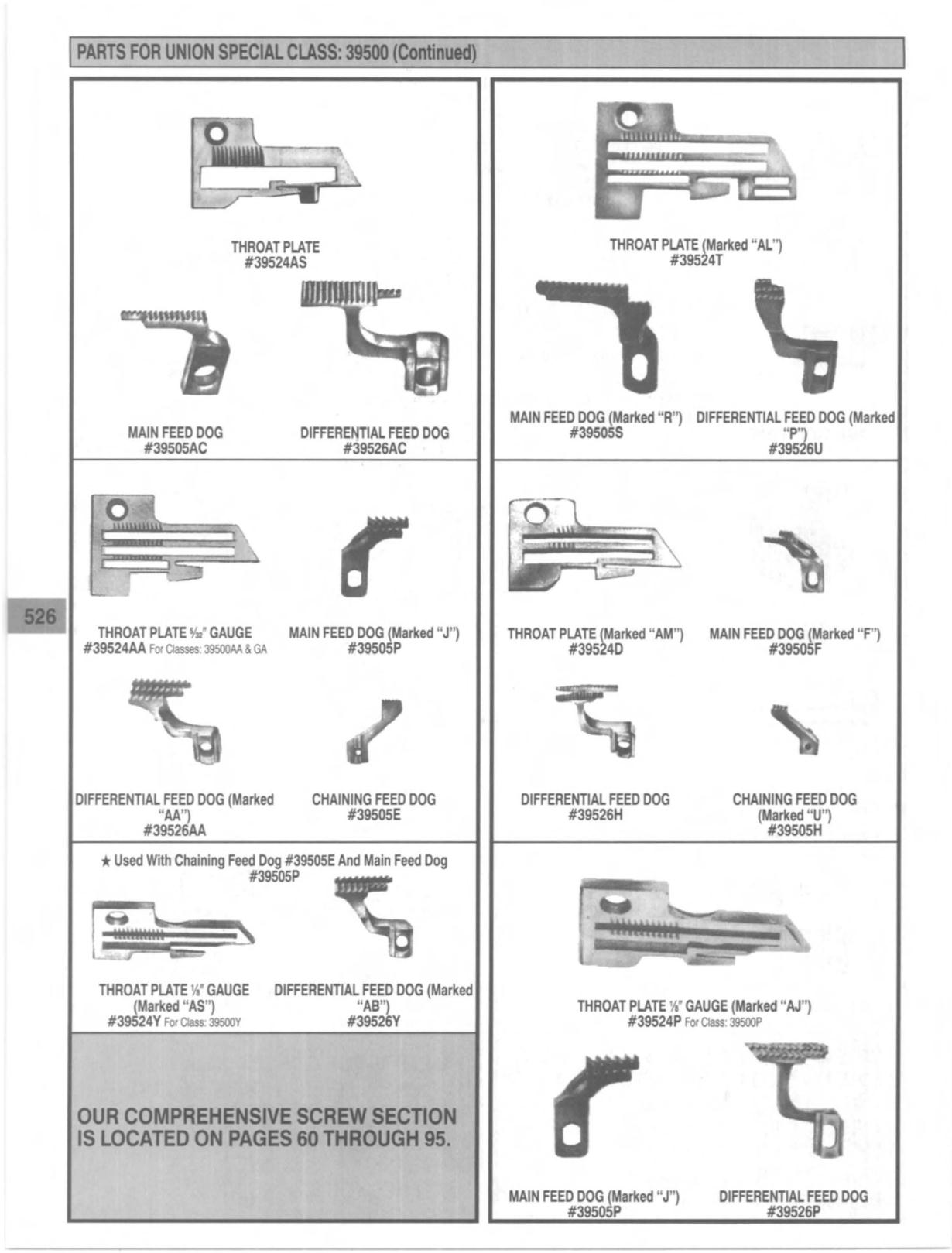 PARTS FOR UNION SPECIAL CLASS: 39500