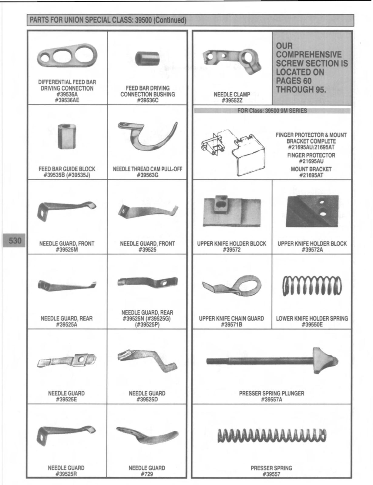 PARTS FOR UNION SPECIAL CLASS: 39500 (Continued)