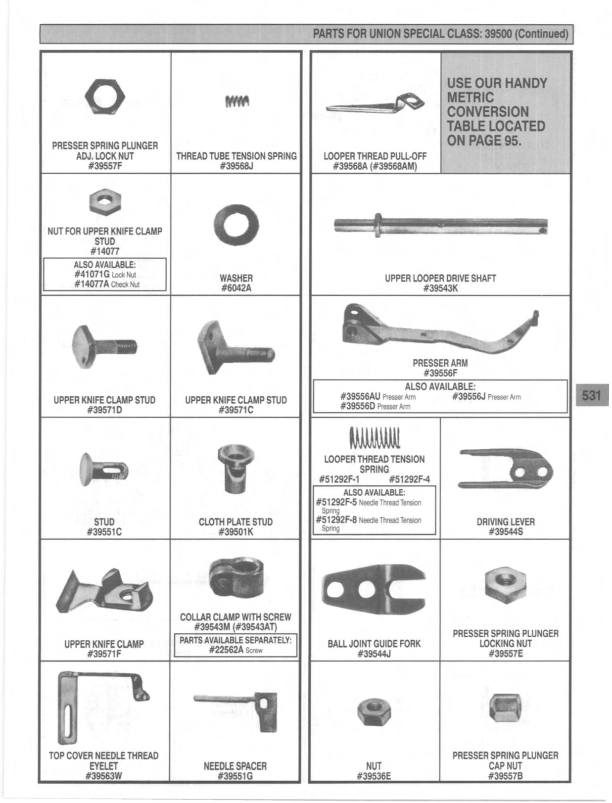 PARTS FOR UNION SPECIAL CLASS: 39500