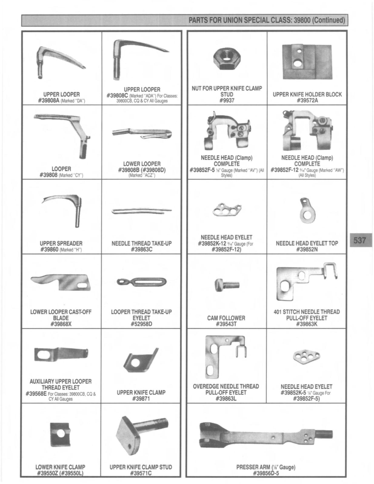 PARTS FOR UNION SPECIAL CLASS: 39800 (Continued)