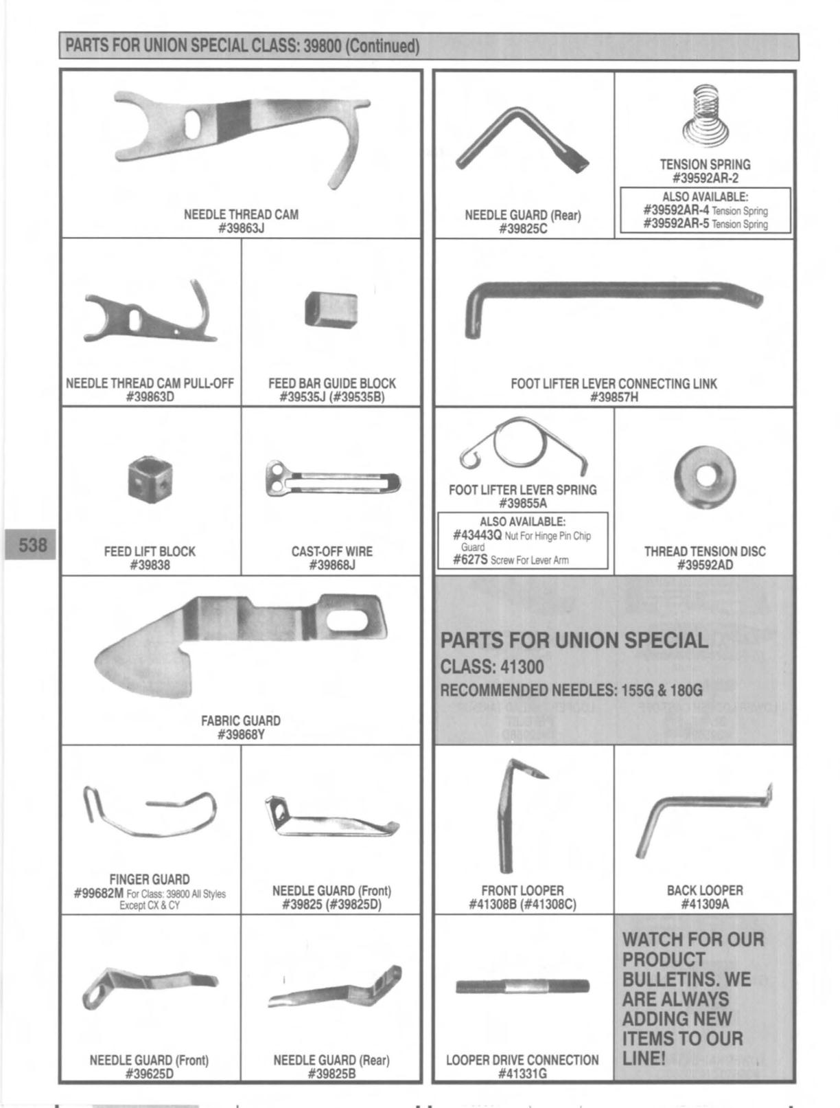 PARTS FOR UNION SPECIAL CLASS: 39800 (Continued)