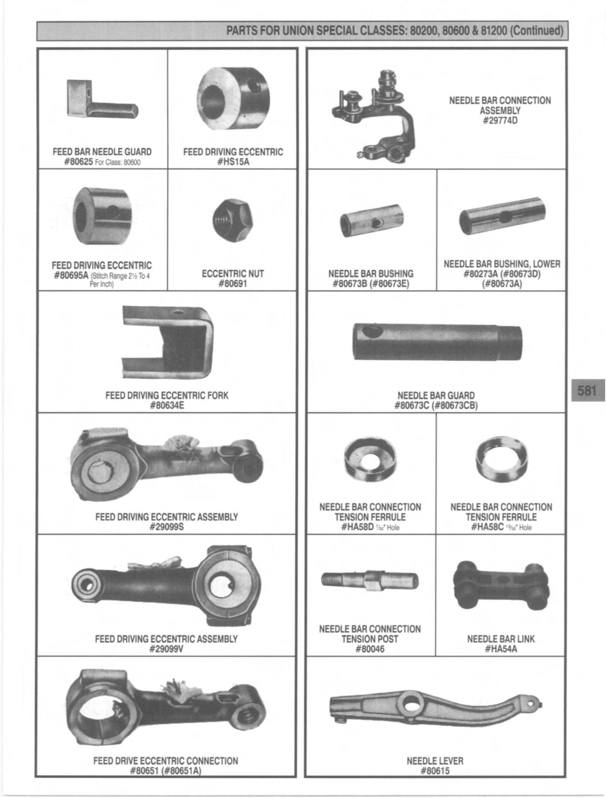 PARTS FOR UNION SPECIAL CLASSES: