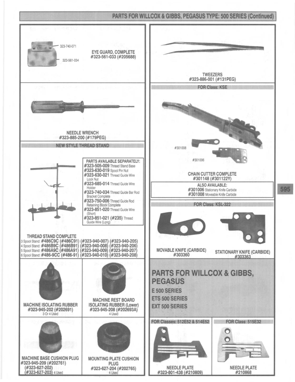PARTS FORWIUCOX , GIBBS, PEGASUS TYPE: 500 SERIES