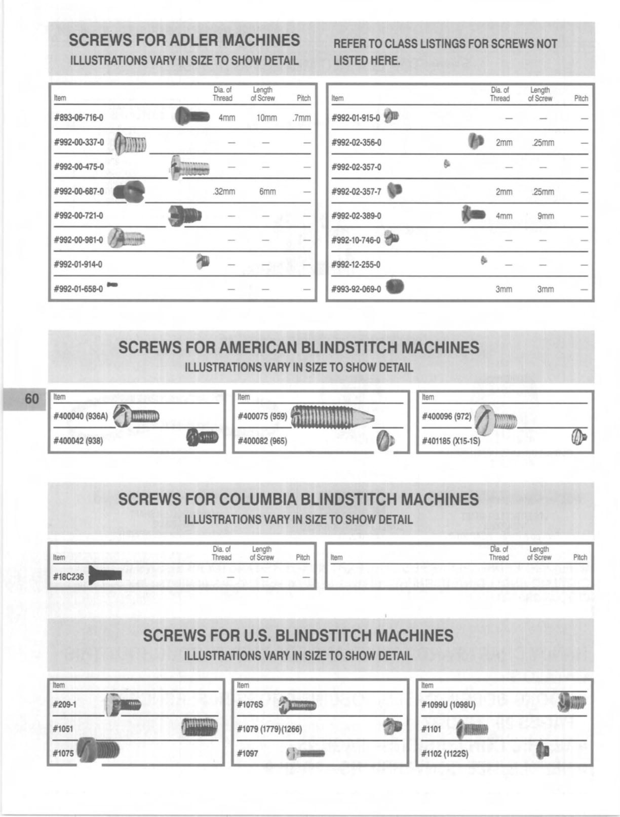 SCREWS FOR U.S. BLiNDSTITCH MACHINES