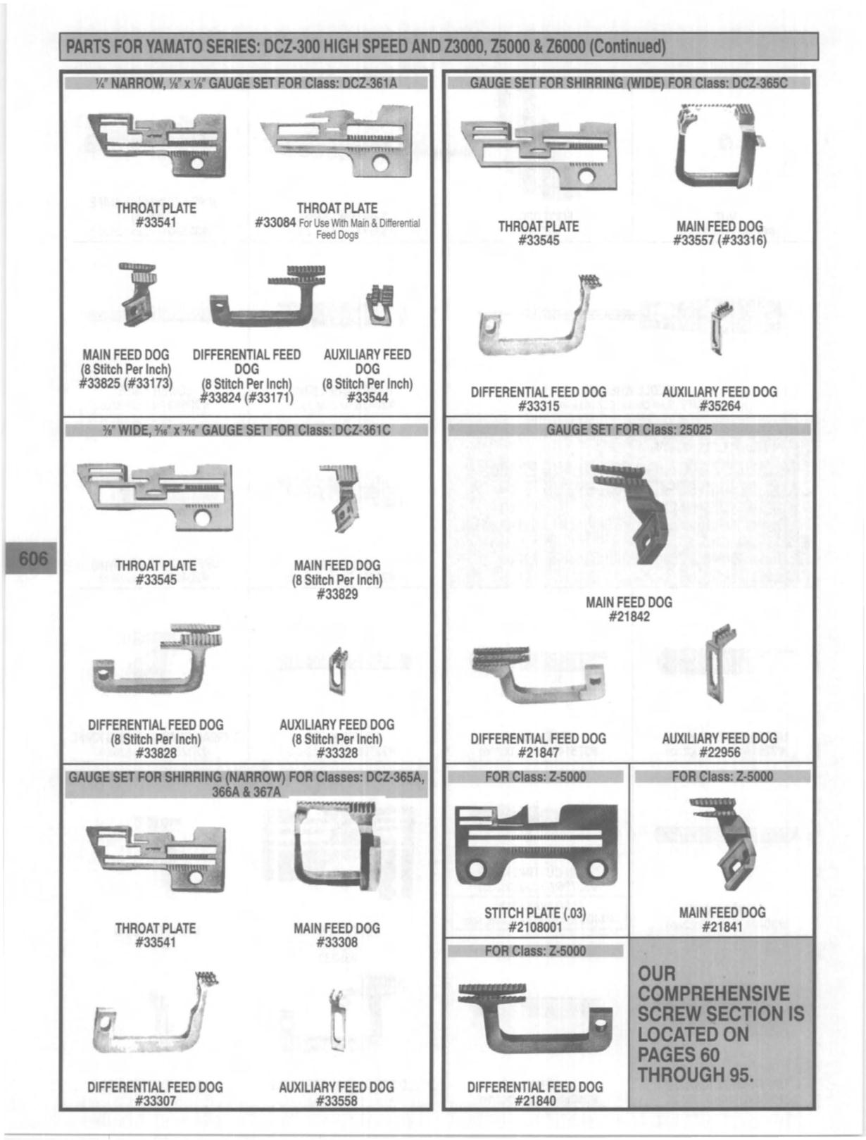 PARTS FOR VAIATO SERIES: DCZ-300 HIGH SPEED AND l3OOO, ZSOOO'