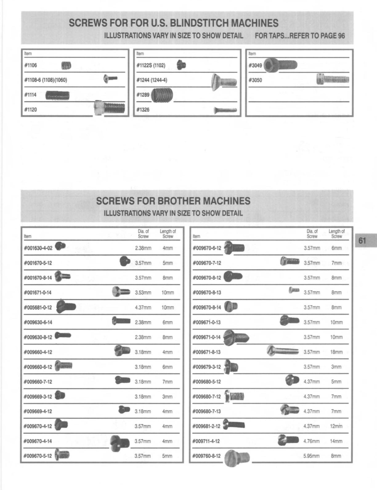 SCREWS FOR FOR U.S. BLiNDSTITCH MACHINES
