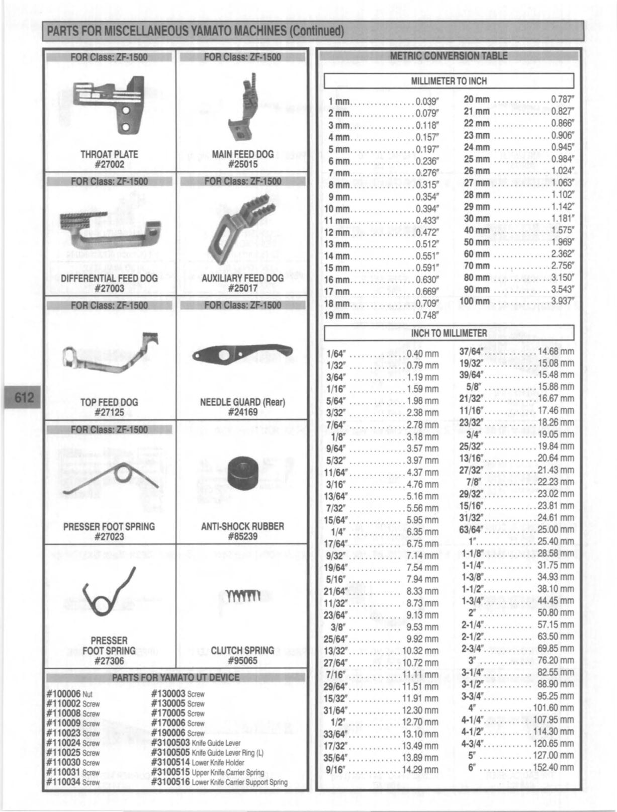 PARTS FOR MISCELlANEOUSYAMATO MACHINES
