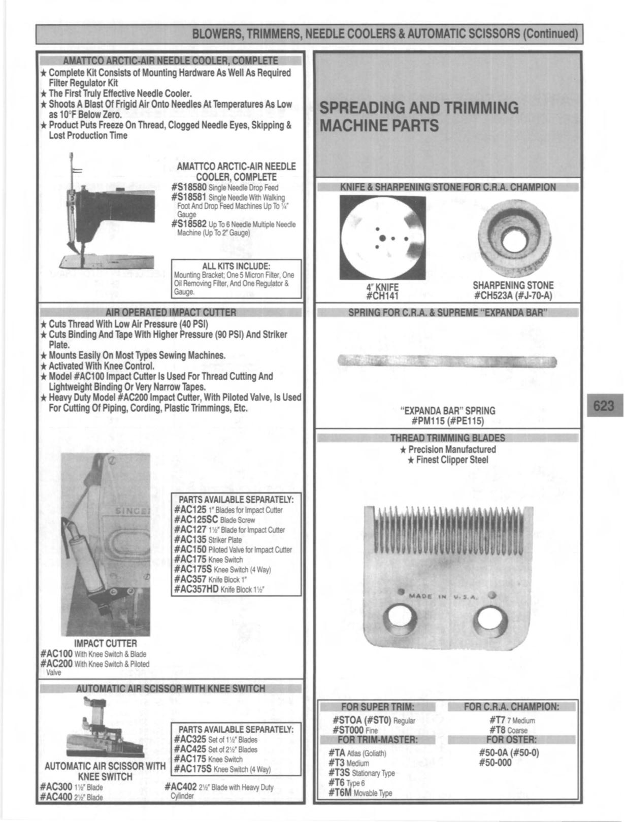 BLOWERS, TRIMMERS, NEEDLE COOLERS. AUTOMATIC SCISSORS