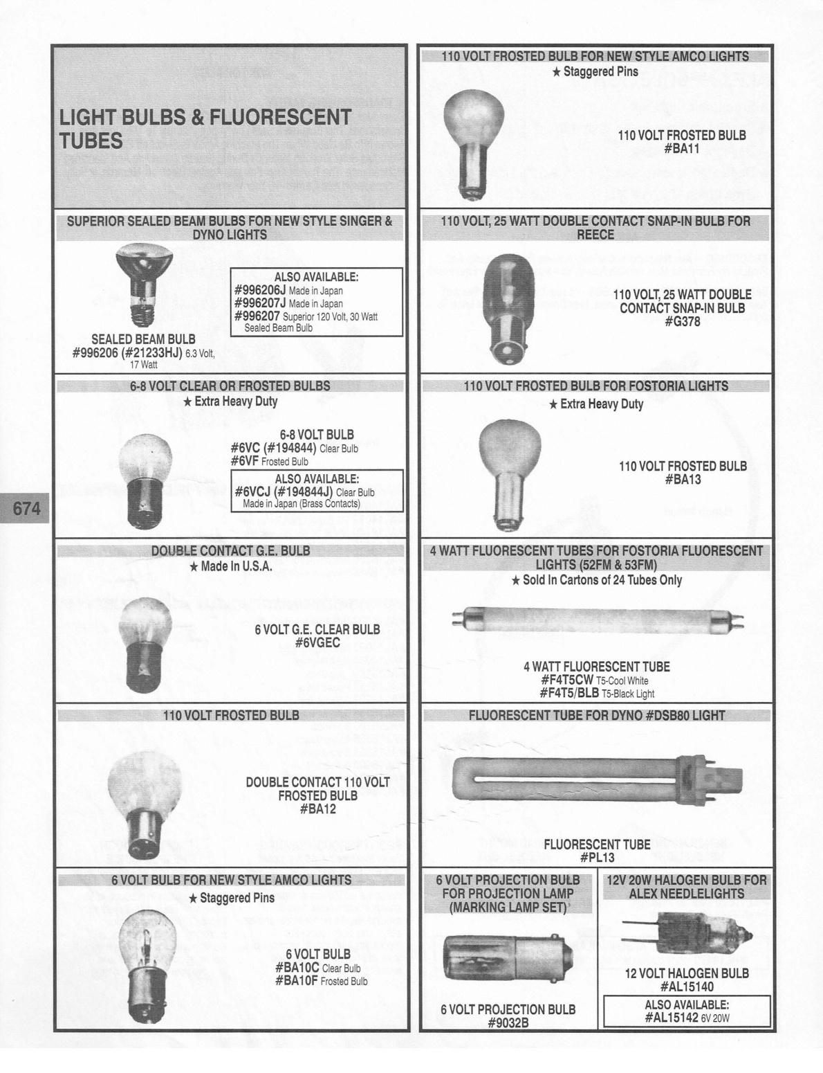SUPERIOR SEALED BEAM BULBS FOR NEW STYLE SINGER
