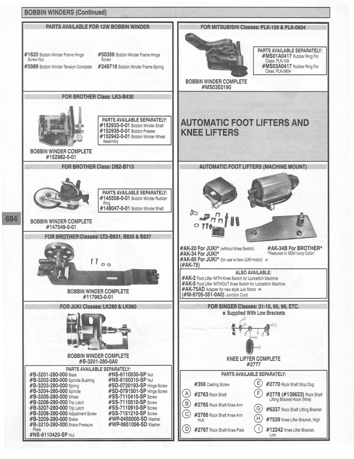 BOBBIN WINDERS (Continued)
