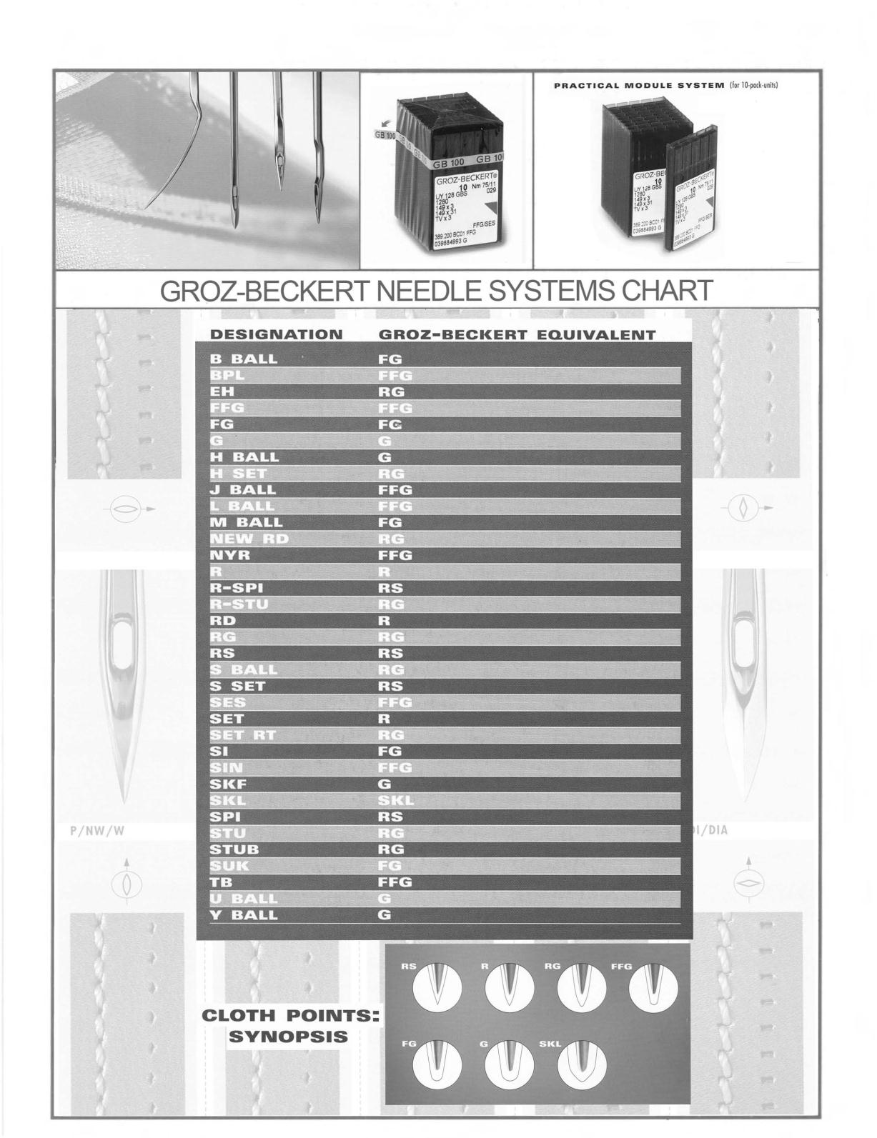 GROZ-BECKERT NEEDLE SYSTEMS CHART