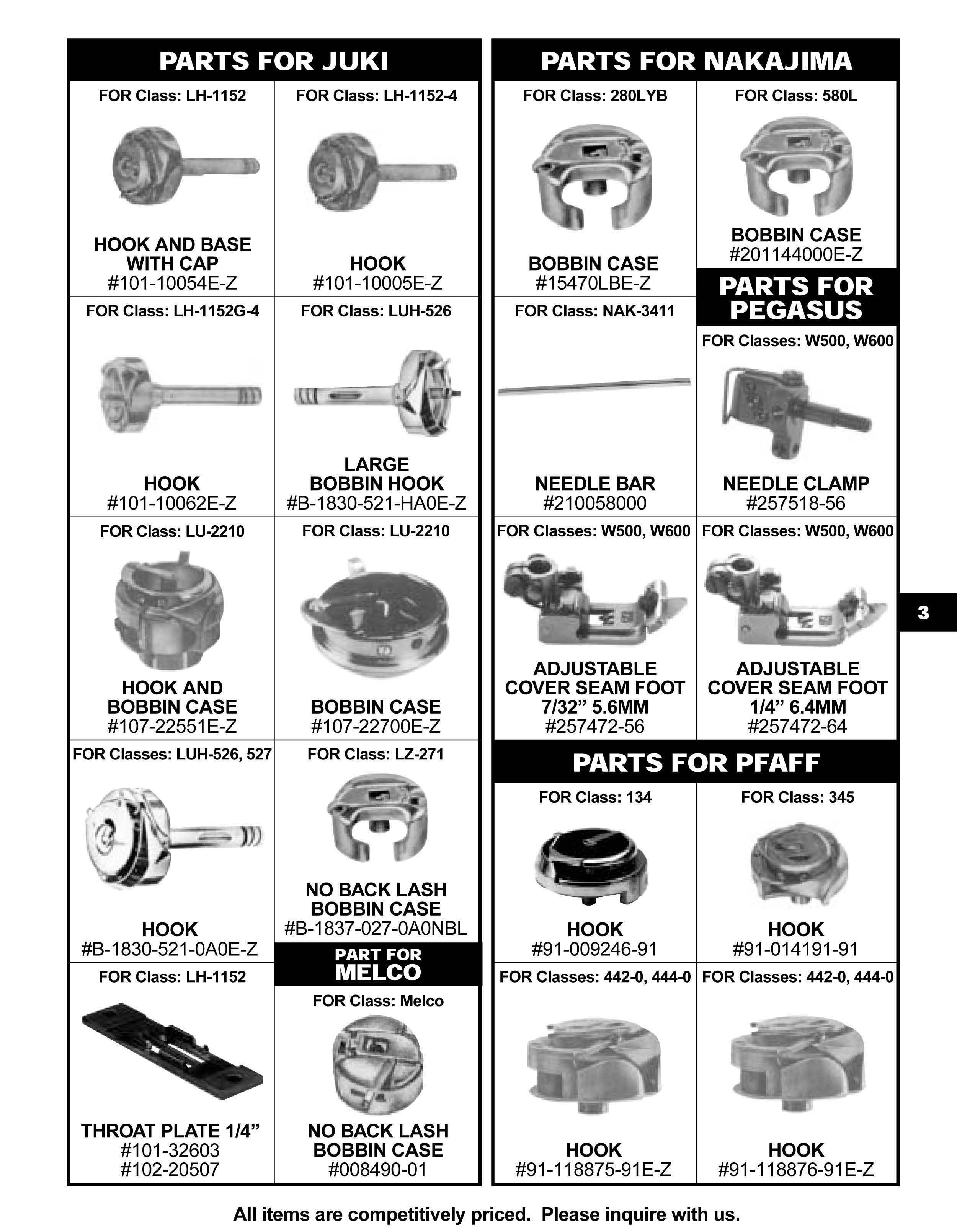 All items are competitively priced. Please inquire with us.