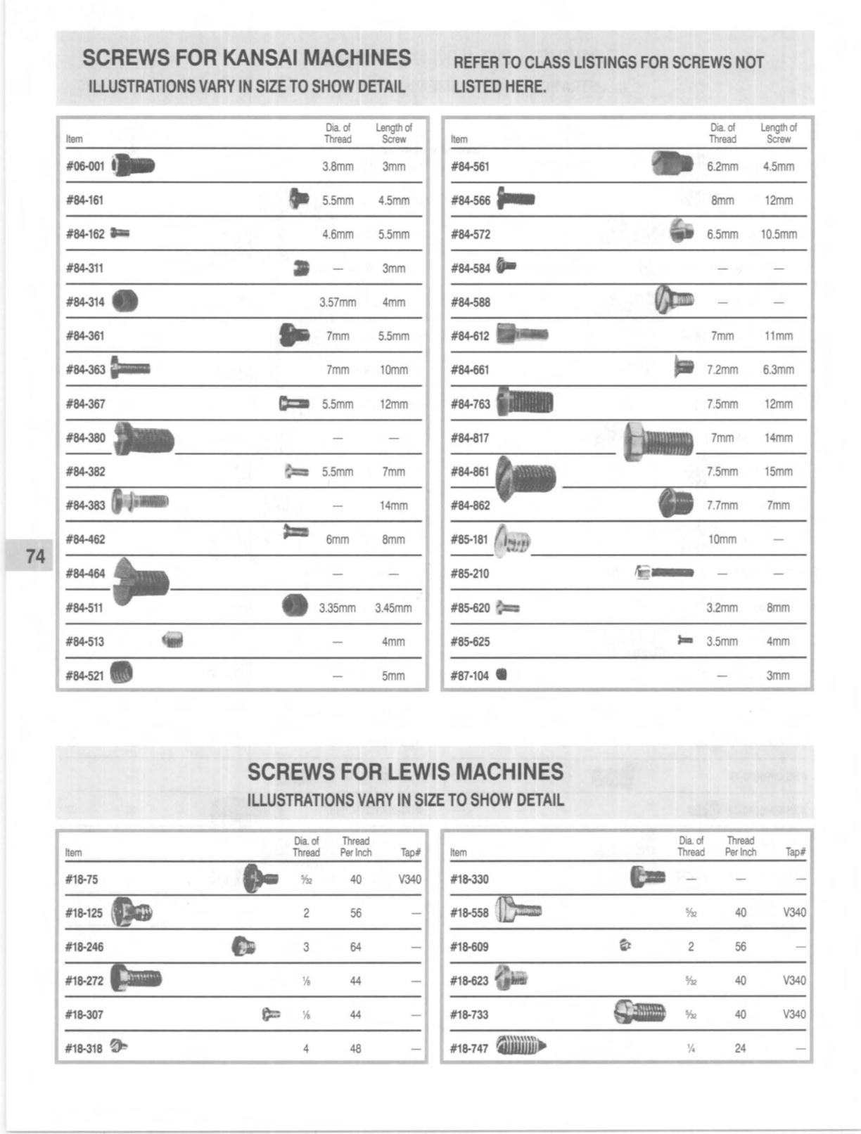 REFER TO CLASS LlST1NGS FOR SCREWS NOT