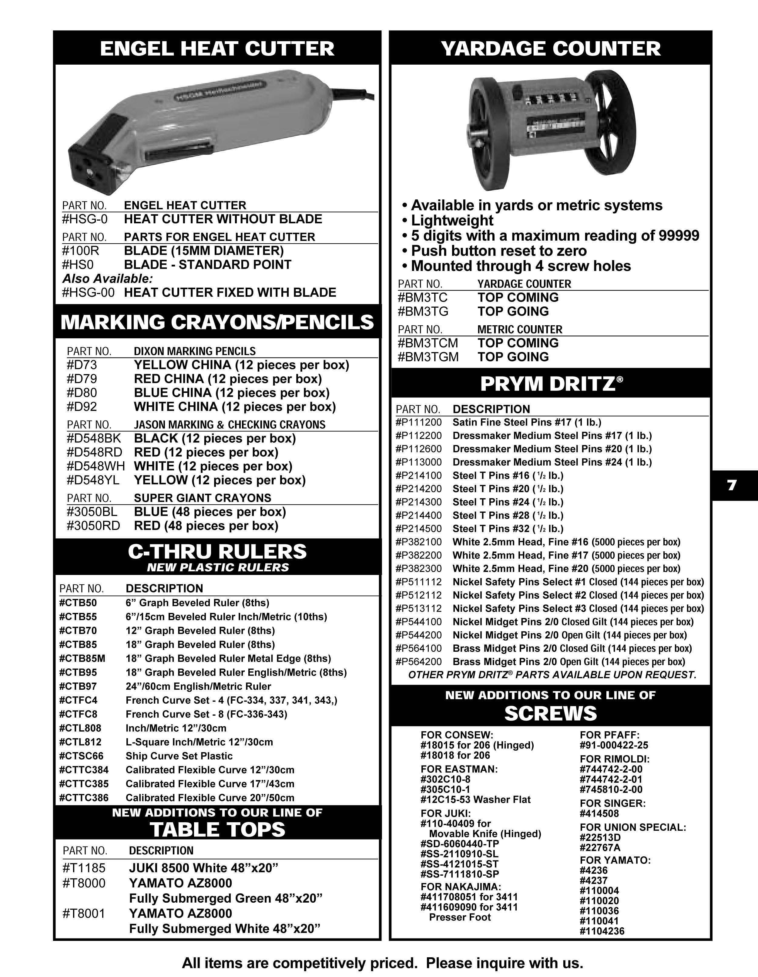 OTHER PRYM DR/TZ® PARTS AVA/LABLE UPON REQUEST.