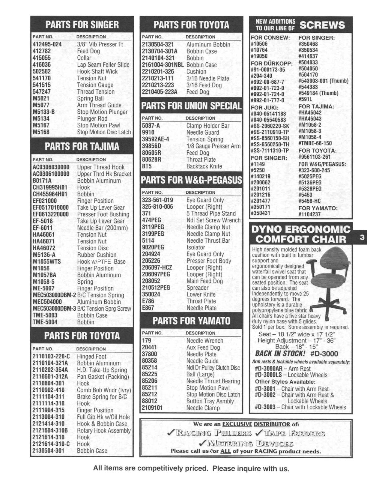 PARTS FOR SINGER