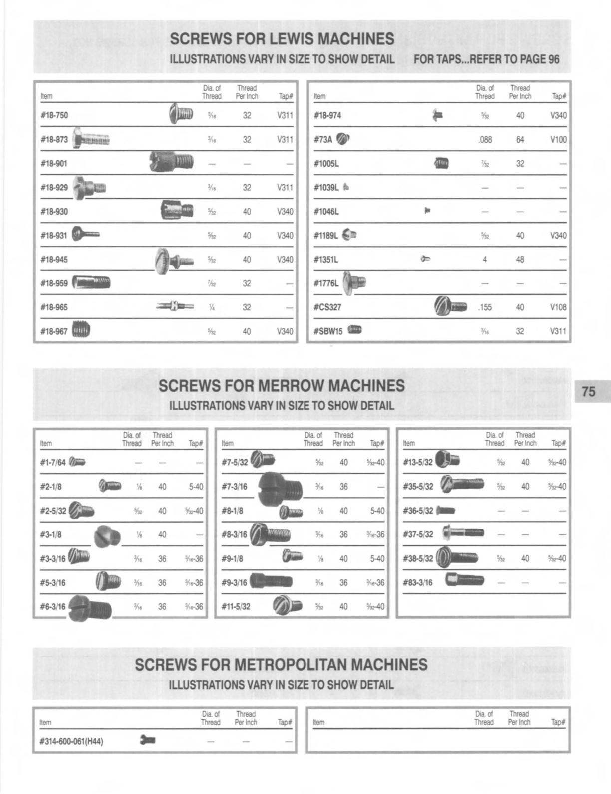 SCREWS FOR METROPOLITAN MACHINES