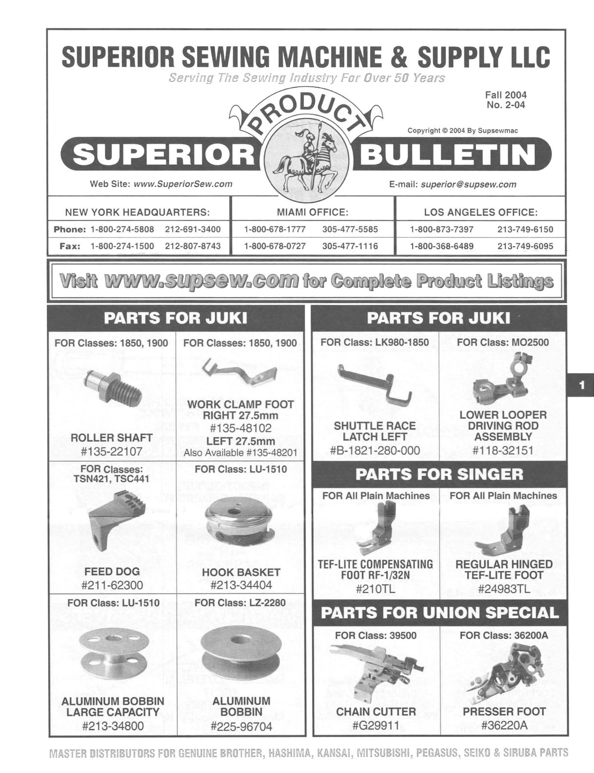 MASTER DISTRIBUTORS FOR GENUINE BROTHER, HASHIMA, KANSAI, MITSUBISHI, PEGASUS, SEIKO