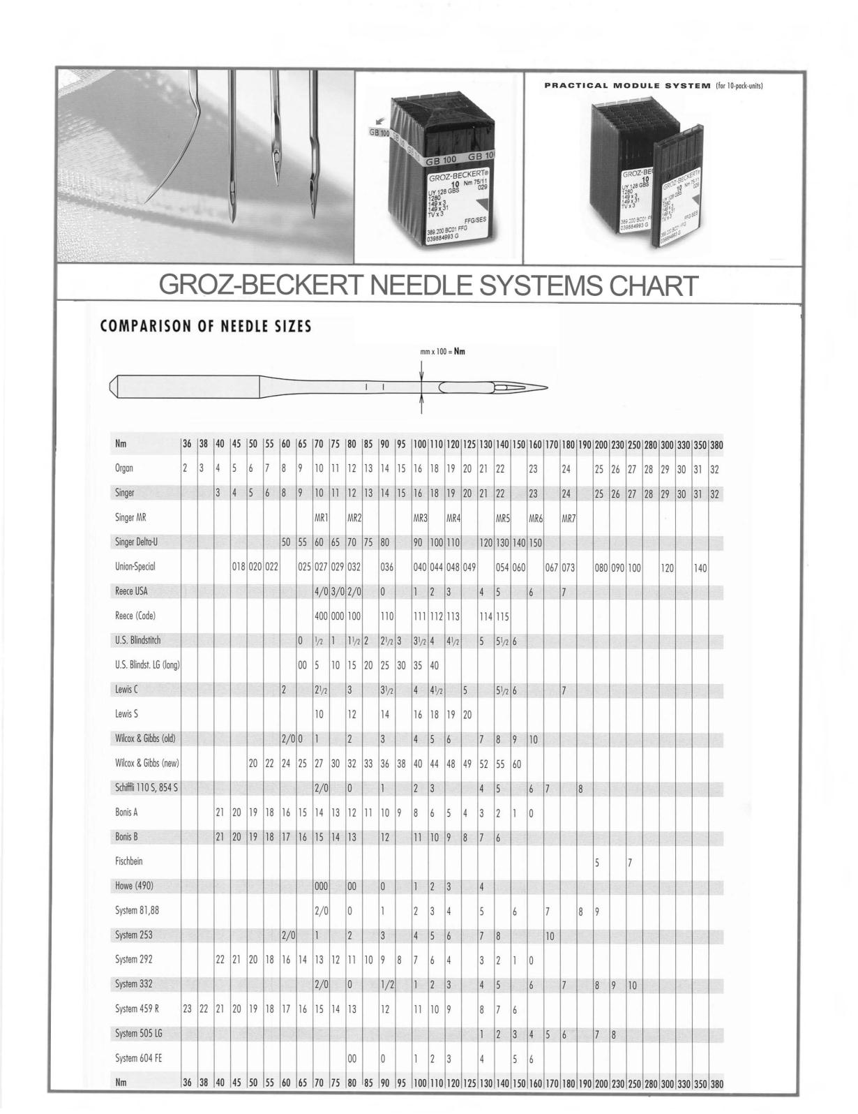 GROZ-BECKERT NEEDLE SYSTEMS CHART