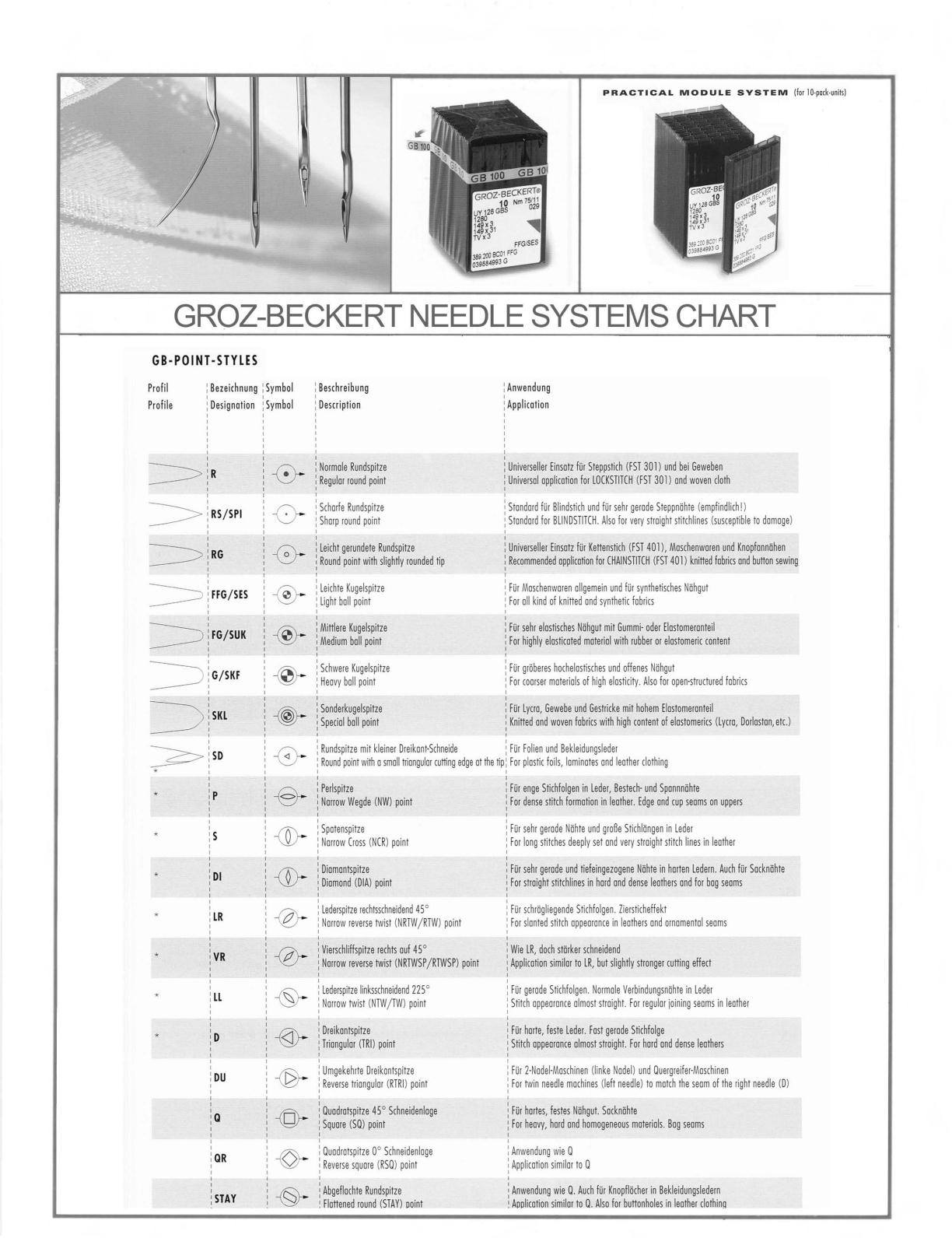 GROZ-BECKERT NEEDLE SYSTEMS CHART
