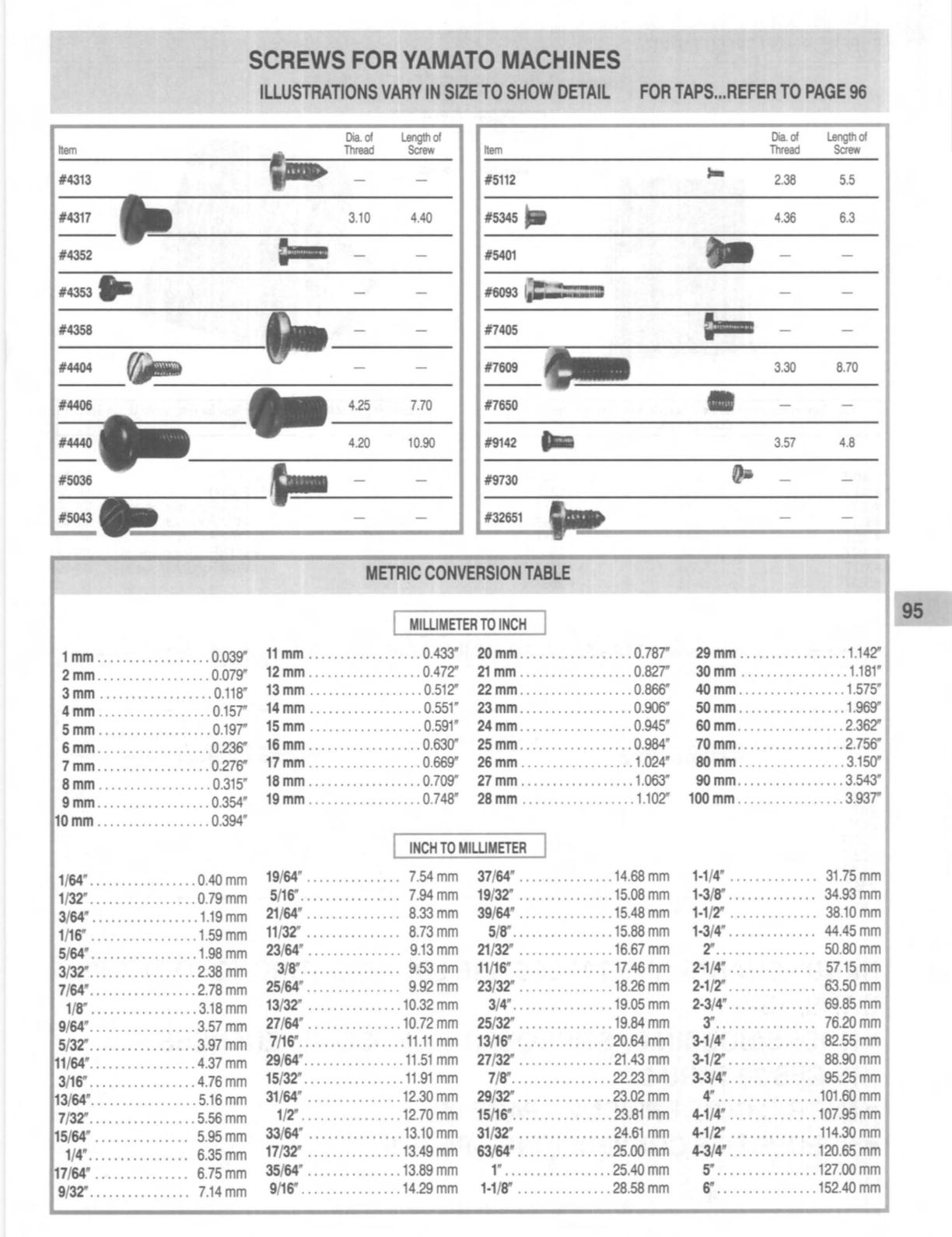 15/64" .. .. .. .. .. .. ... 5.95 mm 33/64" ............... 13.10 mm 31 /32' ............... 24.61 mm